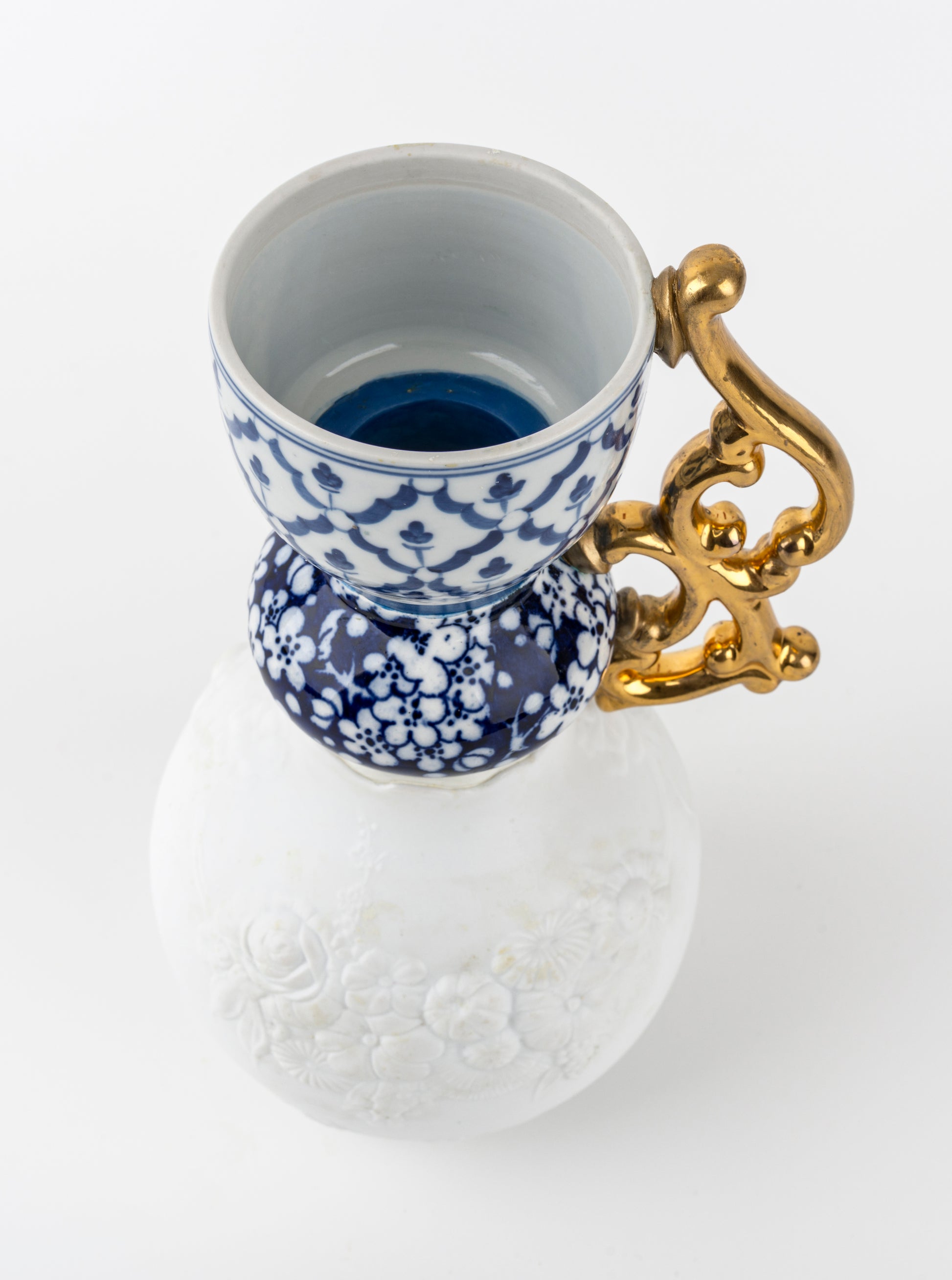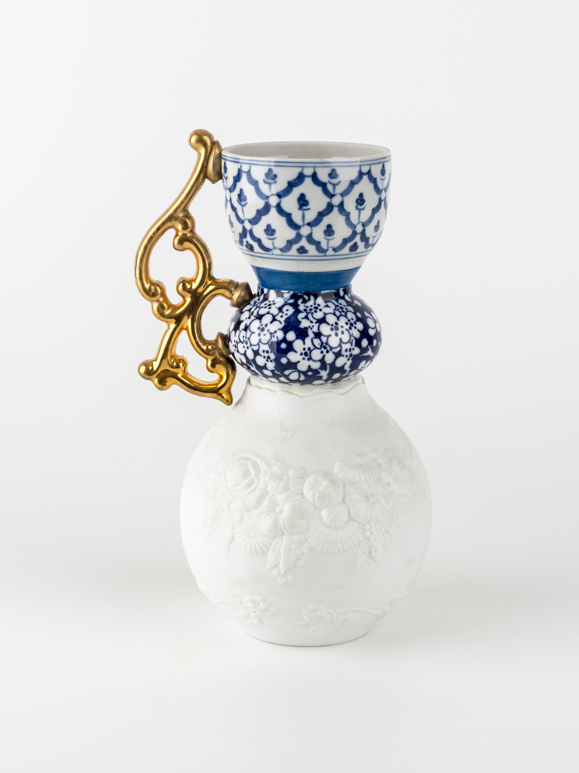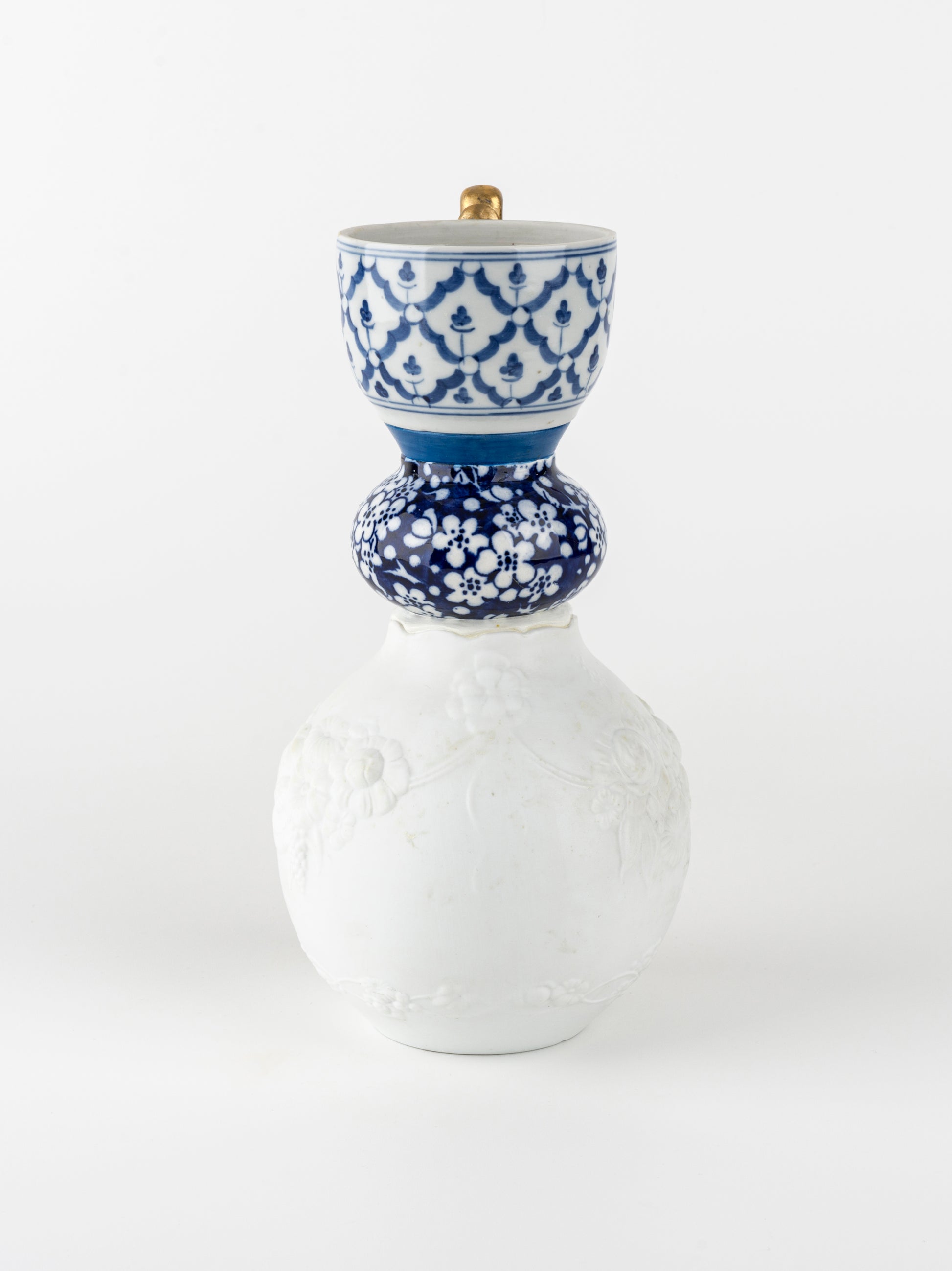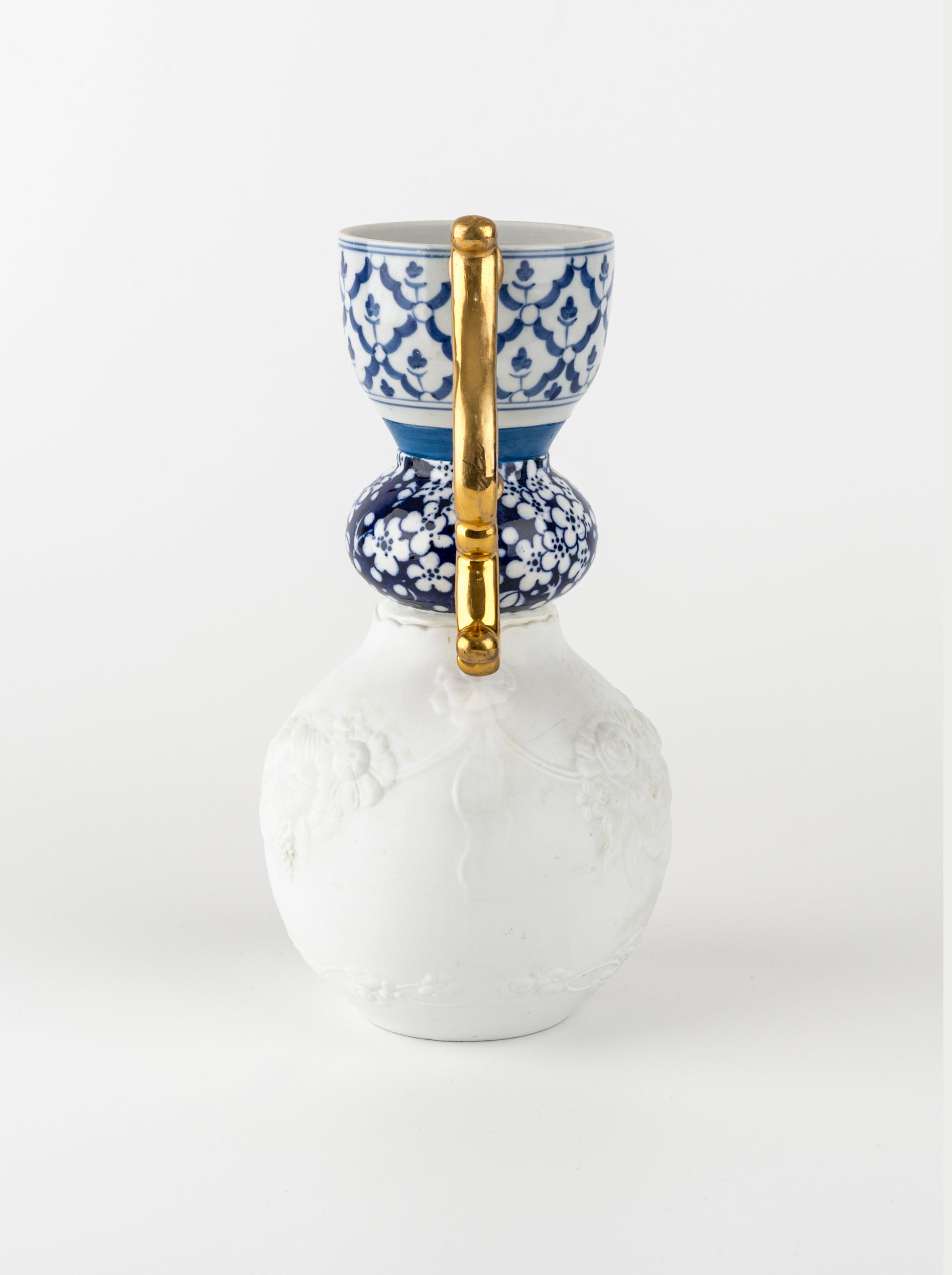 Blue & White Vase with Gold Handle